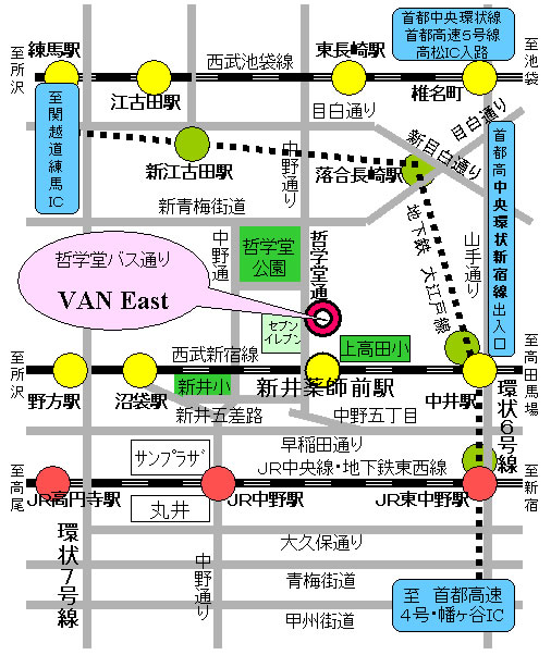 VANKRAFT の位置(哲学堂通り、セブンイレブン斜め向かい、電気屋さんのとなり)を マップファン で見る